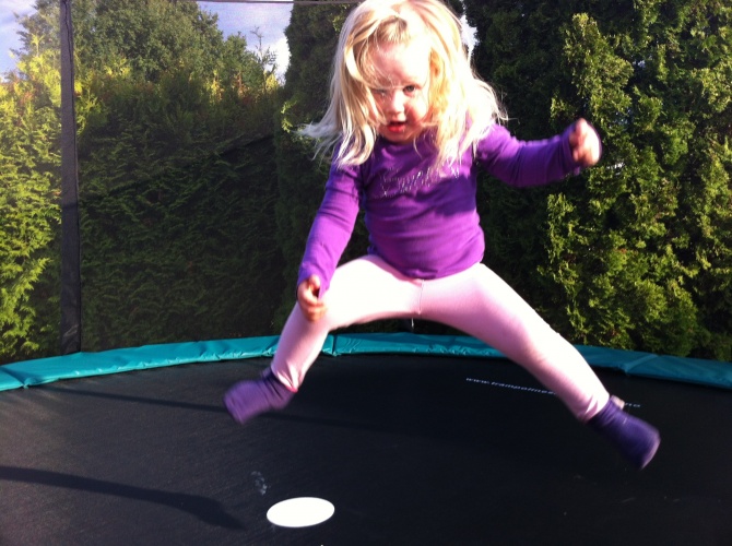 Da har vi vært borte en helg. Det første de to små skulle gjøre når de kom hjem, var å hoppe på trampolinen. Vi er så fornøyde med den! Like moro hver dag.