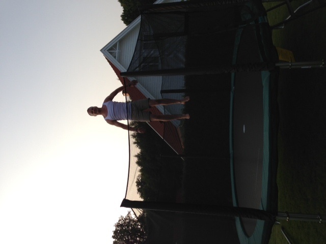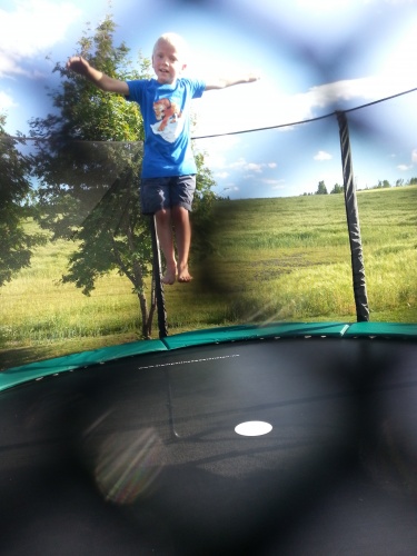 Trampolinen er super god å hoppe på.. god sprett, og mulig for ungene å trikse mer nå enn på tidligere modeller. Pappa her kommer også en del høyere nå enn tidligere.. triksene får vente på seg.. eller ungene ta seg av :-)